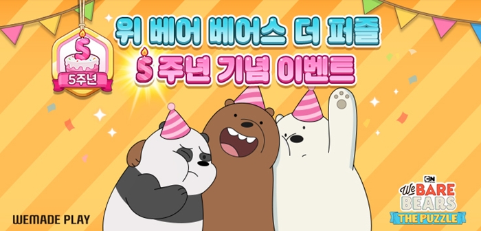 ... 캐릭터 스티커, 다양한 아이템, 경품 응모권 등을 준비한 이번 이벤트는 주인공 곰 삼형제의 익살스러운 모습으로 구성한 16종의 이모티콘과 로봇 청소기 등을 선물하며 5주년의 감사와 축하를 함께 전할 예정이다. 한편 ‘위베어 베어스 더퍼즐’은 5주년 감
