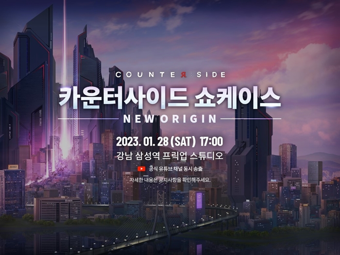... 그와 동시에 실제 서비스 이관이 진행되기 전 유저와의 직접 소통이 가능한 오프라인 쇼케이스를 2023년 1월 28일 삼성역 프릭업 스튜디오에서 개최하며, 서비스 이관 이후의 서비스의 방향성과 로드맵을 유저들에게 공개할 예정이라고 밝혔다. 카운터사이드 쇼케이스 참여 신