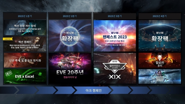 ... 플레이어들은 2023년 동안 업라이징 확장팩에서 소개된 내러티브를 중심으로 새로운 스토리라인들과 기능 및 활기찬 이벤트들을 포함하는 두개의 확장팩을 기대할 수 있으며 1분기에 출시되는 ‘개인 참여’ 기능을 통해 코퍼레이션이나 얼라이언스를 탈퇴하지 않고도