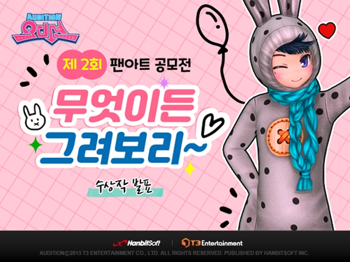 ... 우열을 가리기 힘든 정성스러운 팬아트들 가운데 대상으로는 유저 닉네임 '연주'가 제출한 작품을 선정했다. 해당 작품은 오디션의 콘텐츠 중 하나인 '커플가든' 콘셉트의 배경에 남녀 아바타의 모습, 복주머니, 검은토끼 인형 등을 배치했다. 또한