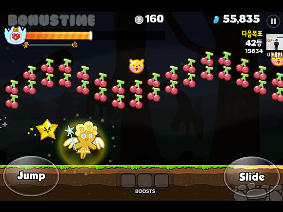 ... 카카오톡 게임하기 플랫폼을 통해 출시된 모바일게임들은 대부분 지인과 점수 경쟁을 펼치는 것을 기반으로 하는데 최근 구글 마켓에서 매출 순위 1위를 달리고 있는 ‘쿠키런 for kakao’에서도 그 승부가 뜨겁다. 쿠키런에서는 보통 100만 점을 돌파해도 중수 이상의