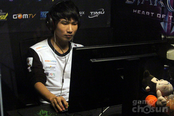 ... 김정우는 1세트 원이삭을 상대로 '혼멸자'를 막아낸 뒤 본진 바꾸기로 이득을 챙겼다. 이어서 3시 확장에 가시촉수를 다수 펼치며 수비까지 완벽하게 성공하며 승리를 따냈다. 김정우는 2세트 김택용과의 경기 역시 혈전을 펼쳤다