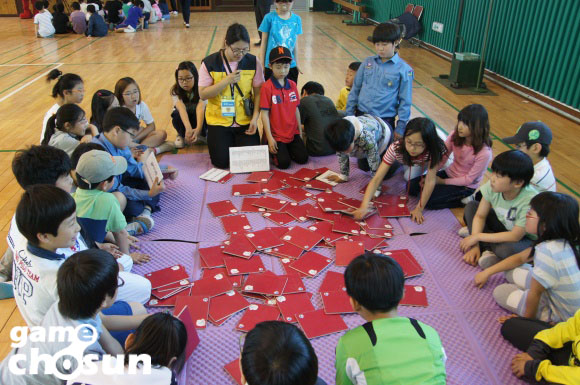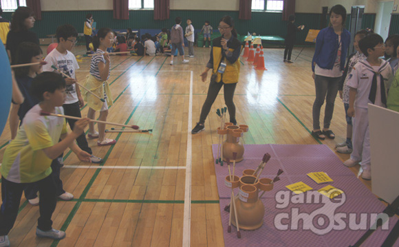 ..." 지난 16일 오전, 서울 하계동 연촌초등학교 강당에서 진행된 '넥슨 건강한 네티켓 수업' 시간. 강당 안은 아이들의 우렁찬 목소리로 가득차 있었다. 십여명의 소그룹으로 나뉜 아이들은 '기왓장 격파', '콩주머니 던지기', '원반 공튀기기' 등 다양한 놀이를 즐기며 시간가