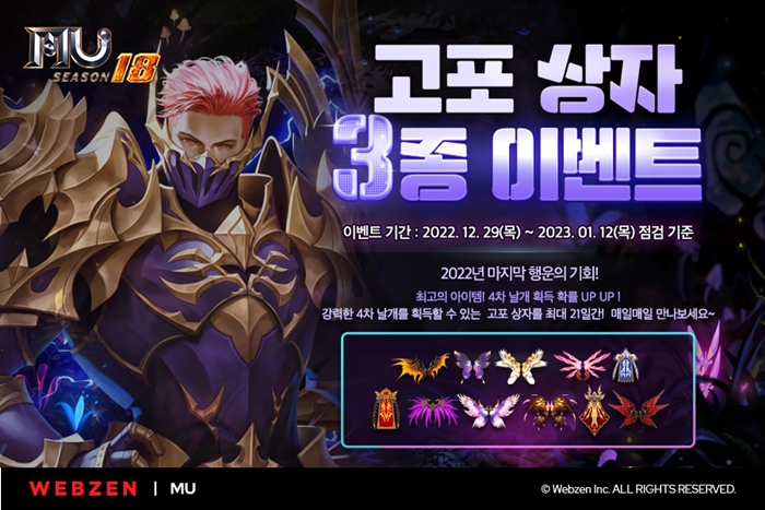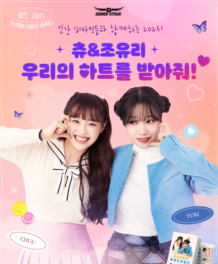 ... 1월 12일까지 츄, 조유리 캐릭터 누적 보유 기간 300일 이상 달성 시 영구제 캐릭터 선택권을 제공하며, 영구제 2세트를 모두 획득한 서든러를 대상으로 추첨을 통해 싸인 마우스패드와 더불어 츄 혹은 조유리의 영상 메시지를 선물한다. 멀티카운트에서 획득한 응모권은 츄,