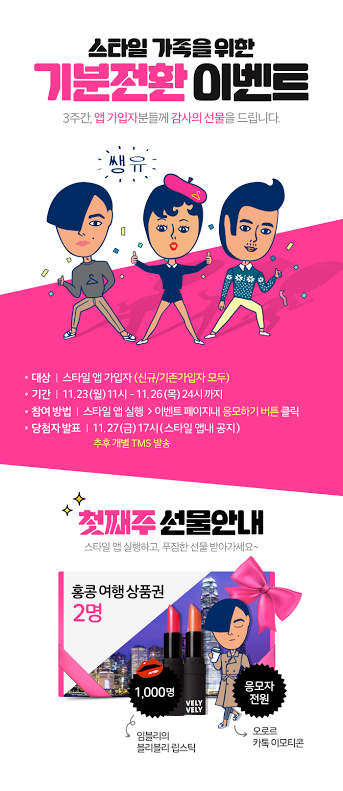 ... 참여 방법은 간단하다. 카카오스타일 앱을 내려받은 후, ‘SALE’ 탭 내 이벤트 페이지에서 ‘참여’ 버튼을 누르기만 하면 된다. 카카오스타일 기존 이용자는 물론, 신규 가입자도 누구나 참여할 수 있으며 이모티콘은 첫 응모 시 ‘카카오스타일 플러스친구’를 통해 발송된다