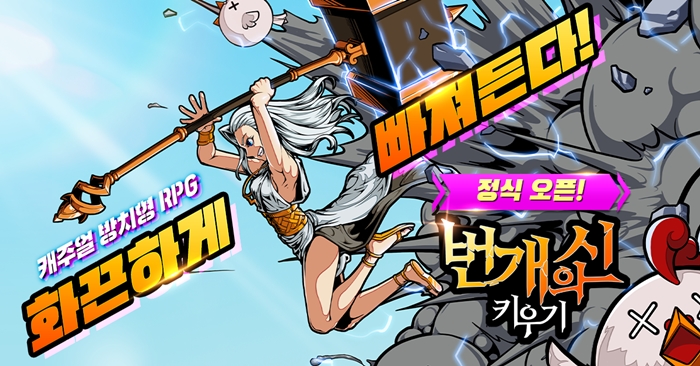 ... 이용자는 게임 제목에서 주는 의미대로 번개의 상징인 제우스가 되어 세상을 지배하는 가장 강력한 캐릭터로 키워내야 한다. 이에 따라 ‘번개의신 키우기’는 힘을 잃은 제우스(캐릭터)가 변신 시스템을 통해 일정 시간 능력을 되찾아 전투를 펼치는 이색