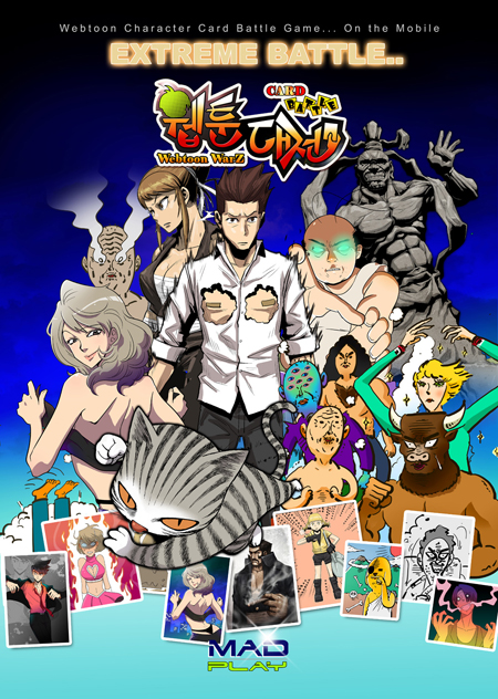 ... 웹툰대전은 천 개가 넘는 웹툰 카드 이미지와 함께 카드 조합, 합성, 별점 시스템 등 다양한 카드 성장 요소가 제공된다. 게임 유저는 던전을 통해 골드와 카드를 획득하고 일반 보스보다 더욱 강력한 킹보스 사냥으로 보다 좋은 카드를 얻을 수 있다. 현재 정식 라이선스 계
