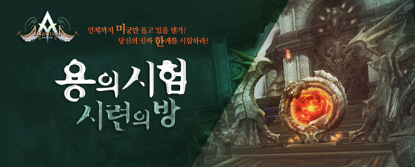 ... '용의 시험-시련의 방은 하루 1회, 1시간 동안만 입장 가능하고, 총 5개로 나누어진 스테이지를 이동하며 획득한 포인트를 기준으로 전체서버 순위가 매겨지며, 실시간으로 갱신된다. 매월 1일에는 이전달 랭킹 결과에 따라 유저들에게 특별한 보상을 지급한다. 우선 5월 한 달