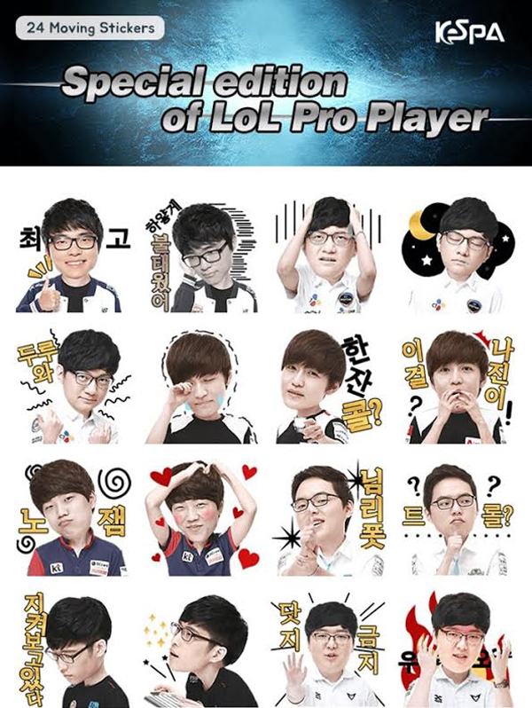 ...이번 이모티콘은 첫 출시를 기념해 LoL 7개 팀 별 인기 선수 특별 에디션으로 먼저 제작됐다. 이번에 이모티콘으로 만나볼 수 있는 선수는 ‘페이커’ 이상혁(SKT), ‘썸데이’ 김찬호(kt), ‘매드라이프’ 홍민기(CJ), ‘퓨리’ 이진용(삼성), ‘캡틴잭’ 강형우(진어에),