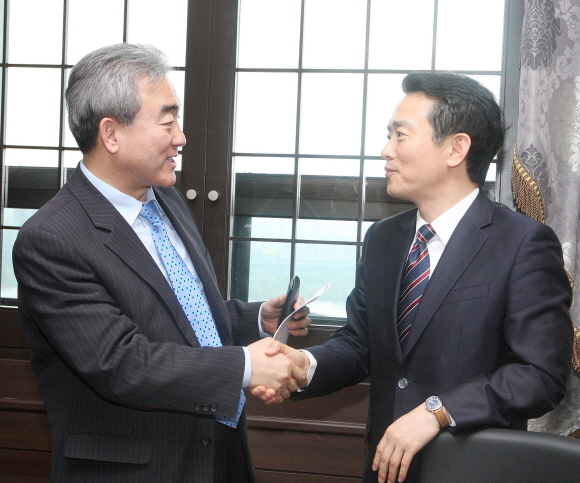 ... ▲유진룡 장관(좌)과 남경필 한국게임산업협회 회장이 인사를 나누고 있다. ▲ 유진룡 장관과 인사를 나누는 박지영 컴투스 대표. ▲ 유진룡 장관이 게임업계 대표 간담회에 참석해 의견을 나누고 있다