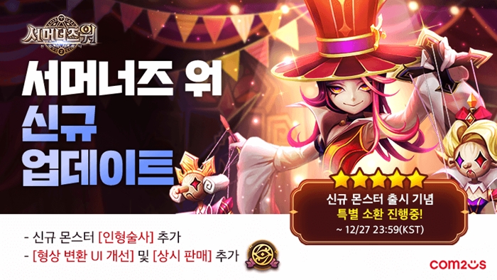 ... 업데이트에 앞서 지난 9일에는 티저 이미지가 공식 카페를 통해 공개됐다. 스산한 공연장에서 마리오네트 인형들을 조종하는 인형술사의 이미지와 함께 일부 스킬도 소개돼 유저들의 기대를 모았다. 주요 스킬은 적에게 데미지를 입히는 동시에 자신의 공격 게이지를 증가시키며