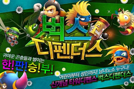 ... ‘벅스디펜더스’는 8종 착한 곤충들이 신비의 씨앗을 지키기 위해 20여 종 나쁜 곤충들과 맞서 싸우는 게임이다. 사용자는 8개 맵 30여 개 스테이지에 도전하는 아케이드모드, 하늘에서 랜덤하게 떨어지는 유닛을 효과적으로 배치하여 적을 물리치는 순환모드, 끊임없이 밀려드는 적