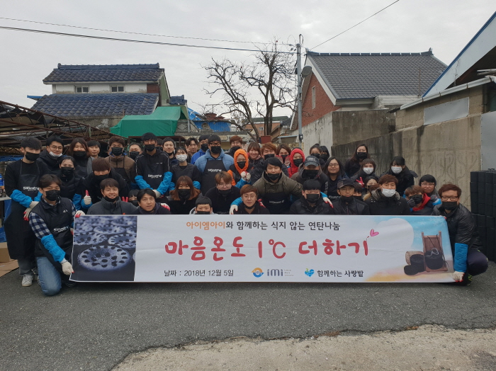 ...아침부터 현장을 찾은 아이엠아이 임직원은 추운 날씨에도 연탄을 나르며 나눔을 실천했다. 주민들은 임직원 옷에 묻은 연탄재를 손수 털어주고 준비한 간식거리를 전달하며 감사의 마음을 전했다. 아이엠아이는 임직원과 주민들이 따뜻한 간식과 음료로 몸을 녹이고 이야기 나눌 수 있도록 현