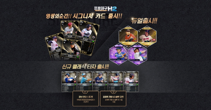 ... 시그니처 등급 선수 카드로 20명(NC 해커, LG 이상훈, SK 정근우 등)이 새롭게 업데이트 됐다. 이용자는 ’86, ‘87년도에 한국프로야구에서 활약한 507명의 선수 카드를 새롭게 만날 수 있다. 각 연도별 배지 6종과 브로치 6종도 이용 가능하다