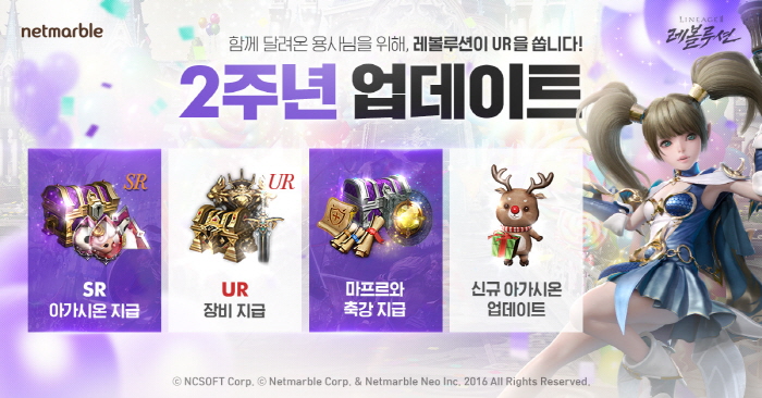...'마프르의 가호 랜덤상자'에는 상자 1개당 최대 100개까지의 '마프르의 가호(강화에 유용한 아이템)'가 제공되며, '황금의 축복받은 강화주문서 상자'는 1개당 최대 30개의 '축복받은 강화주문서'를 획득할 수 있다. 특히, 'UR 등급 장비'를 보상으로 지급하는 이벤트는 처음으