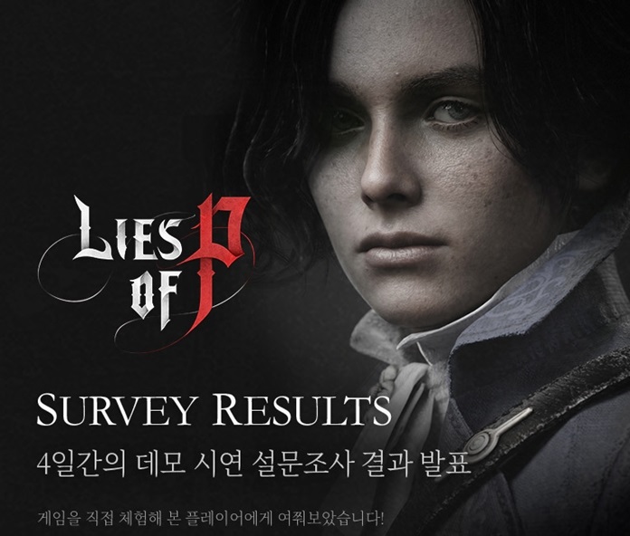 ... 네오위즈에 따르면 지난 11월 17일부터 20일까지 4일간 총 3,821명의 참가자들이 게임을 시연했고, 918명이 설문조사에 참여했다. 설문은 부스 현장에서 실시간으로 이뤄졌으며, 소울라이크 장르 매니아, 경험자, 미경험자의 세 가지 유형으로 나뉘어 답변 받았다. 이