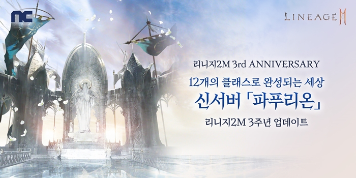 ... ‘크로니클Ⅸ. 운명의 부름’은 리니지2M 서비스 3주년을 기념한 대규모 업데이트다. 이용자는 오늘(30일)부터 ▲신서버 ‘파푸리온’ ▲신규 클래스 ‘매직캐논’ ▲신규 마스터 던전 ‘천공의 섬 군도