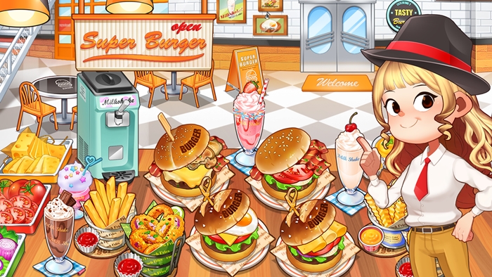 ... 두툼한 패티 위 잘 구운 버섯과 베이컨, 신선한 야채 등 개인의 입맛과 취향에 따라 즉석에서 만들어지는 수제 버거, 우유와 아이스크림을 블렌딩한 부드럽고 달콤한 셰이크, 고소하고 바삭한 양파튀김 세트 등을 포함해 슈퍼 버거의 감성과 스타일이 깃든 다양한 메뉴를 게임을 통해 만나볼