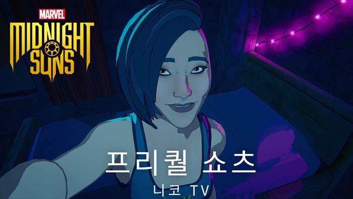 ... 또한 2K와 마블 엔터테인먼트는 독일 아티스트 Eileen Steinbach와 협업을 통해 니코와 미드나잇 선즈의 모습을 독특한 미니멀리즘 스타일로 표현한 포스터를 공개했다. ‘마블 미드나잇 선즈’의 프리퀄 쇼츠는 총 5편의 짧은 애니메이션으로