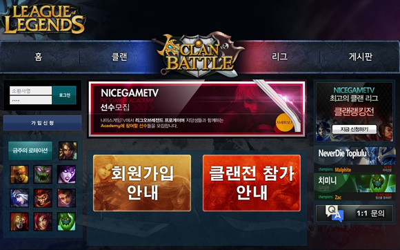 ... 이번 대회는 ‘월장원전’과 ‘최강클랜전’으로 구성되며 오는 5월부터 9월, 10월부터 내년 2월까지 두 번의 리그로 진행된다. 최강클랜전은 총상금 800만원 규모로 진행될 예정이며 우승을 차지하는 팀에게는 NLB 시드권이 부여된다. 참가를 원하는 클랜은 나이스게임TV 신