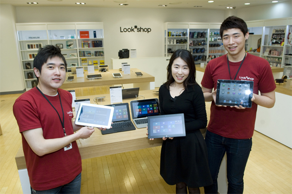 ... 룩샵은 모든 태블릿을 비교 체험하고 구매 및 통신사 개통까지 한자리에서 가능한 태블릿 전문 하이브리드 매장이다. 특히, 룩샵은 국내에서 유통되지 않는 해외 유명 브랜드의 태블릿을 체험할 수 있다. 해외에서 큰 인기를 누리고 있지만 국내에서 유통되지 않는 아마존닷컴의 '킨들