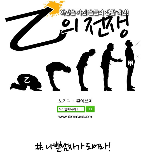 ... 이번에 공개된 '을의전쟁' 13편은 작가의 친구가 겪은 연애 경험담을 그린 것으로 나쁜 남자라면 공감할 수 있는 내용으로 꾸며졌다. 나쁜 남자인 주인공은 여친의 지극정성의 사랑을 받고 있지만 일과 결혼하며 여친의 마음을 아프게 하는 내용이 담겼다. 나쁜 남자가 되고픈 남자
