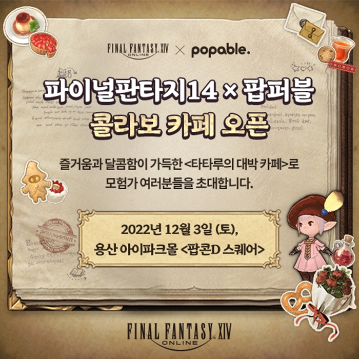 ... 해당 콜라보 카페는 지난 V6. 1 ‘새로운 모험’ 업데이트에 포함된 ‘타타루의 대박 상점’을 모티브로 테마를 구성했으며, 주요 NPC인 ‘타타루’가 대박 상점 운영 자금을 마련하기 위해 ‘타타루의