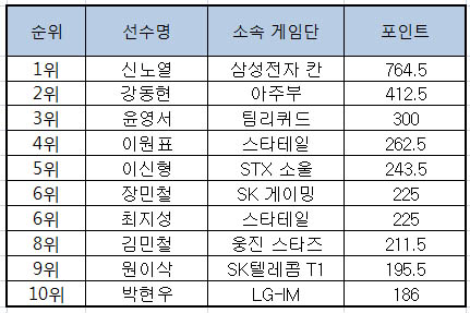 ... 이스포츠연맹에서 9일 4월 스타크래프트2 랭킹을 발표했다. 이에 따르면 지난달 핫식스 GSL 시즌1에서 우승을 차지한 삼성전자 칸 신노열이 1위에 올랐다. ◆ 이스포츠연맹 4월 공인랭킹[오상직 기자 sjoh@chosun