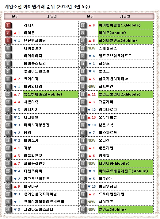 ... 엔씨소프트 '아이온'은 넥슨 '던전앤파이터'를 누르고 2위를 차지하며 1위 '리니지'를 턱 밑까지 추격하고 있다. 또 PC방 점유율에서 8년 아성 '던전앤파이터'를 넘어선 '크리티카'도 크게 순위가 올라 8위를 기록했다. 이밖에도 쿤룬코리아가 서비스하는 모바일게임 '암드히