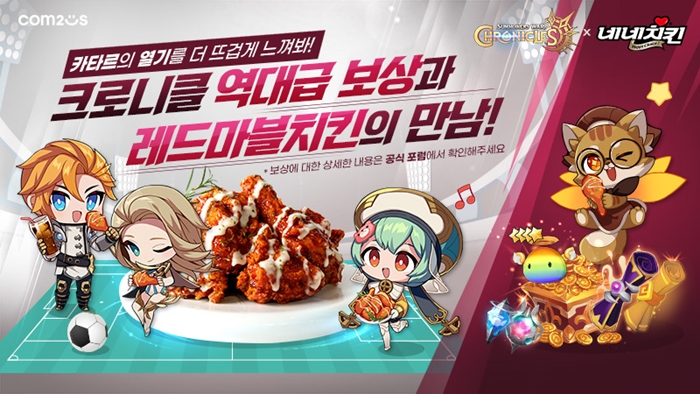 ... 먼저 오는 12월 13일까지 네네치킨 제품을 구매하는 고객들에게 크로니클의 게임 재화가 담긴 종이 쿠폰을 제공한다. 해당 쿠폰에는 ‘신비의 소환서 10개’, ‘고급 경험의 비약 30개’, ‘골드 50,000개&rsquo
