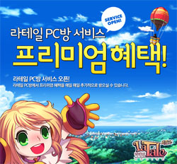 ... 웹젠 가맹 PC방에서 라테일을 이용시 캐릭터의 모든 능력치가 30 증가하며, 몬스터 사냥시 아이템 드랍율 3% 증가, 물리/마법 최대 데미지 3% 증가, 경험치 획득량 30% 증가, 옵션 발생 확률 100% 증가 등 추가 혜택이 부여된다. 회사측은 "이번 PC방 서비스를