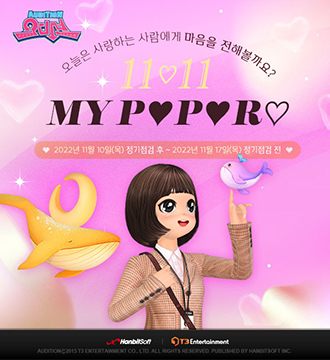 ... 또한 오디션은 11월10일 공개된 '개발자 노트'의 게시글에 댓글로 개발팀을 응원하는 글이나 업데이트 관련 의견을 등록하는 등 오디션 개발팀에 마음을 전한 유저 중 11명을 추첨해 각각 '7일 교환티켓 1장'을 지급한다고 전했다. 개발자
