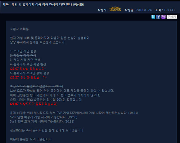 ... 이같은 문제로 인해 지난 14일 라이엇 측은 홈페이지로 사과의 뜻을 밝히며 유저들에게 게임을 승리할 경우 추가 게임머니를 지원받는 10승 IP 부스트를 지급했다. 하지만 24일 오후 7시 경부터 2시간 가량 서버 이상이 발생하며 유저들의 라이엇의 서버관리에 대한 불만이 다시금