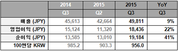 ... 환차익을 비롯해 예상보다 높은 영업이익으로 당사 전망치를 상회하는 순이익을 냈다. 부문별로 살펴보면 PC 온라인게임 매출은 지난해 같은 기간보다 10% 증가한 395억엔을 기록했고, 모바일게임 매출은 7% 오른 103억엔을 달성했다. 지역별 매출 비중은 중국이 41%로 가