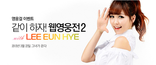 ... 또 방송 중간 유저들에게 돌발 미션을 제공하고 수행한 유저들에게 다양한 상품을 선사할 예정이다. 유니아나 조남현 부장은 "웹영웅전2와 홍보 모델 이은혜에게 보내주시는 여러분들의 관심과 사랑에 보답하고자 이번 프로모션을 준비하게 되었다"며 "단순 광고모델에 그치지 않고 유저