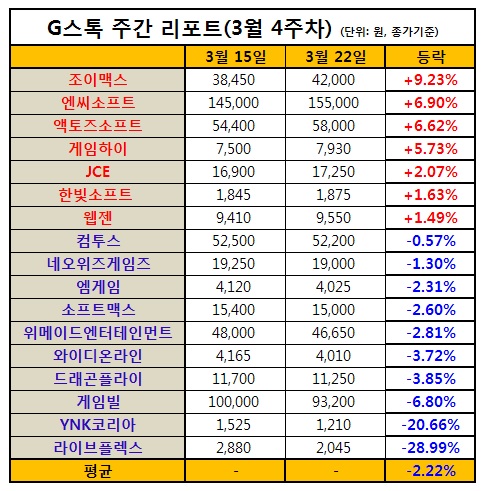...23%의 상승세를 기록하며 2주 연속 강세를 보이고 있다. 이는 1월 말 출시한 '윈드러너'가 현재까지 오픈마켓 최고매출 순위 1,2위를 다투고 있는데다가 이달 초 출시한 SNG '에브리타운'까지 TO5에 진출, 조이맥스에 대한 투자자들의 심리가 완화된 것으로 풀이된다.