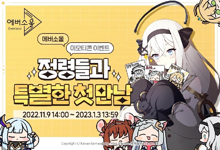 ... 게임 이용자들에게도 친숙한 그림체로 정령들의 외형과 성격을 독특하게 재해석했다. ‘에버소울’ 브랜드 이모티콘은 카카오톡에서 ‘에버소울 공식 톡채널’을 추가하면 누구나 받을 수 있으며, 사전에 채널 추가를 완료했던 이용자는 채널 내
