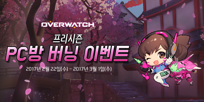 ...이벤트에 참여를 희망하는 플레이어는 이벤트 페이지를 방문해 이름과 휴대전화 연락처를 남기고 이벤트 기간인 2월 22일부터 3월 1일까지 총 8일 동안 누적 24시간 이상 PC방에서 오버워치를 플레이하면 된다. 블리자드는 이벤트 응모 조건을 충족한 플레이어 중 추첨을 통해 총 30만