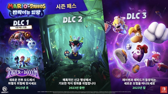... 먼저 첫번째 DLC인 ‘파아아아멸의 탑(the Tower of Doooom)’은 2023년 초 정식 출시된다. 플레이어는 마리오와 래비드 피치 친구들과 함께 부와스텔라 부인의 다차원 타워에 도사린 위험을 제거하고 친구 스포니를 구해야 한다. 특히 본