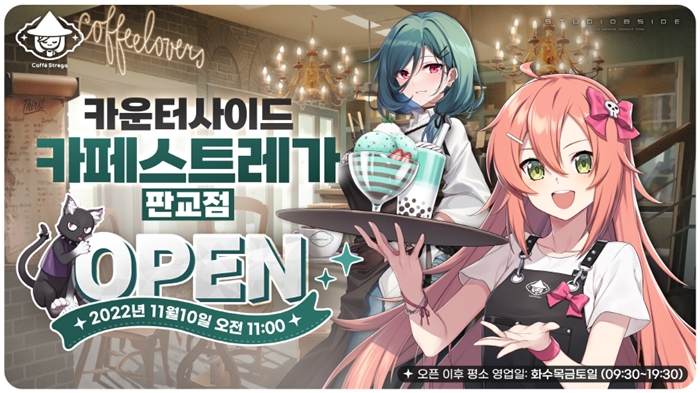 ... 각성 캐릭터 아크릴 스탠드, 캐릭터 담요, 카페 스트레가 족자봉 등 기존에 볼 수 없었던 ‘카운터사이드’만의 특별 굿즈를 만날 수 있으며, ‘카페 스트레가’ 테마를 담은 각종 식음료 메뉴를 맛볼 수 있다. 카페는 기간 한정 없이