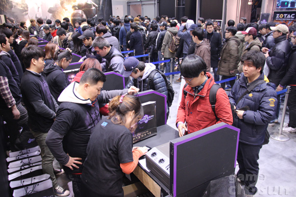 ... 오후 6시 58분 마지막으로 확인한 결과 이날 행사장에는 시작 순간 1030명의 팬들이 입장했다. 불과 한 시간 전까지만 하더라도 곳곳이 비었던 행사장은 1층이 가득찼고 2층도 일부분 팬들이 자리를 차지했다. 이날 행사는 프로게이머들의 시범경기와 코스프레 단체인 스파이럴