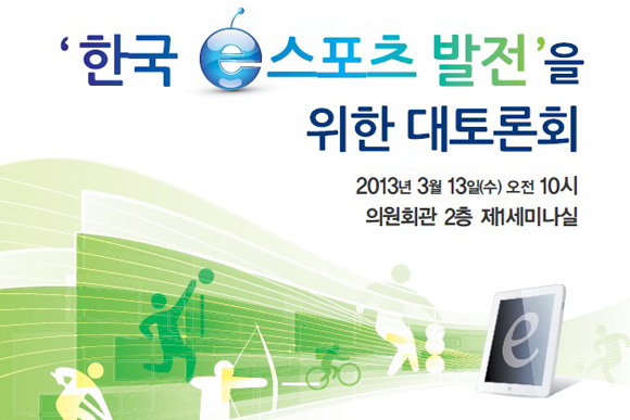...한국 e스포츠협회(회장 전병헌)가 e스포츠의 발전을 위해 대토론회를 개최한다. 협회 회장직을 맡고있는 전병헌 국회의원은 오는 13일 오전 10시에 ‘한국 e스포츠 발전 방안 마련’ 주제로 대토론회를 개최한다고 11일 밝혔다. 김민규 아주대학교 교수가 ‘e스포츠 발전 전략-중장기계획