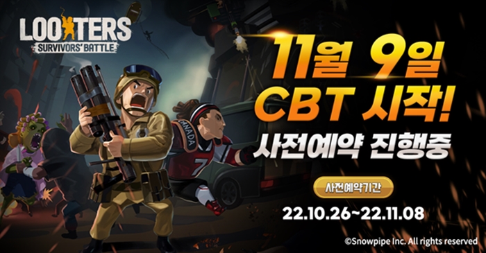 ... CBT는 11월 9일부터 23일까지 총 15일간 진행되며, 국내를 포함하여 캐나다와 독일 및 뉴질랜드 등 국가에서 서비스할 계획이다. LOOTERS는 좀비 바이러스로 황폐해진 세상에서 상대 것은 약탈하고, 자기 것은 지키고자 고군분투하는 ‘LOOTERS(약탈단)