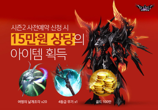 ...사전 예약자 전원에게는 여명의날개 조각 20개, 4등급 무기, 100만 골드 등 15만원 상당의 혜택이 주어진다. 박현 펀셀123 PM은 "'전장의날개' 시즌2에는 던전부터 코스튬 날개까지 여러 콘텐츠가 대거 추가될 예정이다. 사전 예약자를 위한 혜택이 마련됐으니 많은 관심과 호