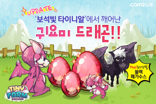 ... 특히 이날 공개된 드래곤을 포함해 ‘피닉스’, ‘구미호’ 등 전설의 동물 3종을 모두 모으면 희귀 동물 캐릭터인 ‘블랙 페가수스’가 추가로 제공된다. 이와 함께 ‘유령양’과 ‘발렌타인 여우’, ‘꿀벌 돼지’ 등 특별이벤트 동물들도 ‘보석빛 타이니 알’에서 얻을 수 있다.