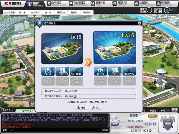 ... 한빛소프트(대표 김기영)는 자사가 개발 및 서비스중인 축구 매니지먼트 온라인 게임 FCM에 유저 자신만의 '꿈의 구장'을 건립하고 각종 부대 시설을 건설해 수익을 창출할 수 있는 신규 컨텐츠 ‘시설 관리 시스템’을 업데이트 했다고 18일 밝혔다. 유저들은 이번 업데이트를 통