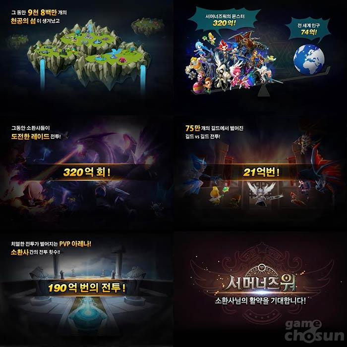 ...5배에 달하는 총 320억 마리 몬스터가 소환됐다. 유저들은 총 320억 회가 넘는 레이드 전투에 도전했으며, 190억 번의 유저간 대전이 열리고 지금까지 총 75만 개의 길드가 생성, 총 21억 번의 길드 간 전투가 펼쳐졌다. 해당 코너에는 또한 지난 2017년과 2018년 ‘