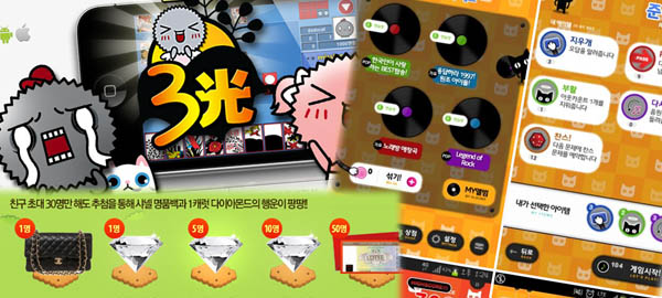 ... 15일 관련업계에 따르면 최근 일부 국내 모바일게임사들이 신작 출시를 기념해 명품백과 다이아몬드, 3D 스마트TV 등 값비싼 경품을 앞세운 이벤트를 실시하고 있다. 불과 몇 개월 전 스마트기기와 상품권 등 모바일게임과 관련된 중저가의 ‘실속상품’을 제공해왔던 것과는 확연히 다른