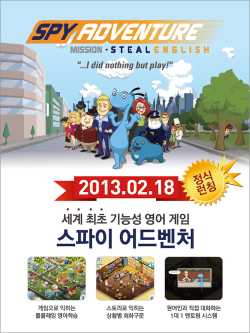 ... ‘스파이어드벤처’는 실제 영미 문화권에서 체험 가능한 다양한 주제 상황들을 최대한 실제와 비슷하게 경험하게 함으로써, 원어민의 대화표현과 문법을 쉽고 재미있게 습득 할 수 있다는 평가를 받고 있다. 다른 기능성게임과 차별화된 1:1 원어민 멘토링 시스템을 통해 원어민 강
