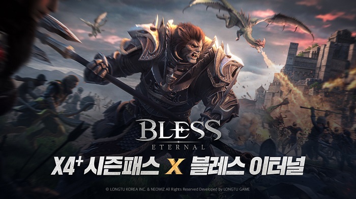 ... 이와 함께 ‘X4+ 시즌패스” 판매 전 룽투코리아가 ‘블레스 이터널’ 유저들에게 추첨을 통해 ‘X4+ 시즌패스’ 5매를 추첨을 통해 제공한다. 지난 8월, 국내 구글플레이, 앱스토어, 원스토어에 정식 출